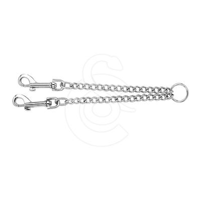 Astucieuse ! Une seule laisse mais 2 chiens en promenade avec cette accouple en chaine munie de 2 mousquetons.