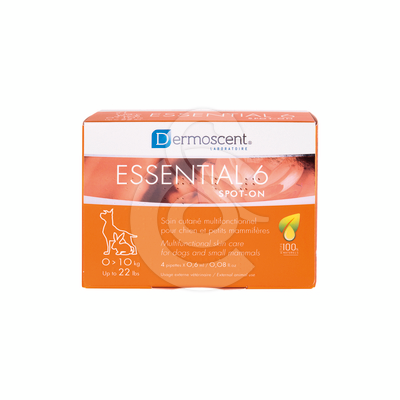 Essential 6® spot-on est le 1er spot-on dermo-cosmétique pour chien, chat et petits mammifères (lapin, furet, cochon d’Inde, hamster, rat, souris…) qui apporte une réponse simple et efficace aux déséquilibres cutanés (aussi appelés états kérato-séborrhéiques) et à leurs conséquences poils ternes, cassants, pelage sec ou gras, mauvaises odeurs etc.