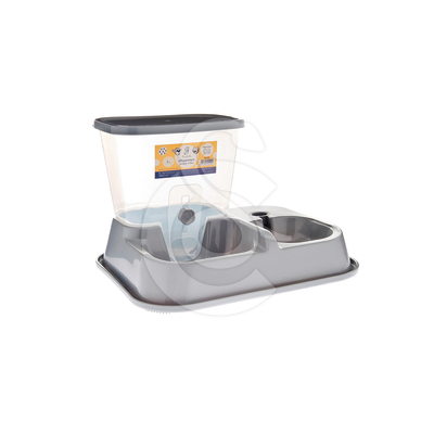 Le combiné l’eau est distribuée grâce à une bouteille type soda classique, et les croquettes avec une réserve de 4,2 L maximum alimentée par le haut.
