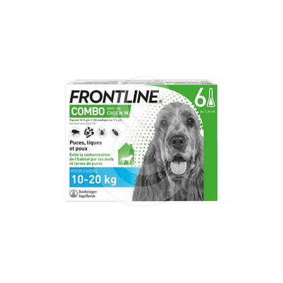 . Chiens de 10 à 20 kg une pipette de FRONTLINE Combo Spot-on Chien M par animal (1,34 ml).