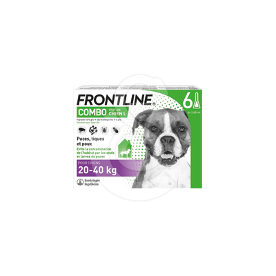 . Chiens de 20 à 40 kg une pipette de FRONTLINE Combo Spot-on Chien L par animal (2,68 ml).