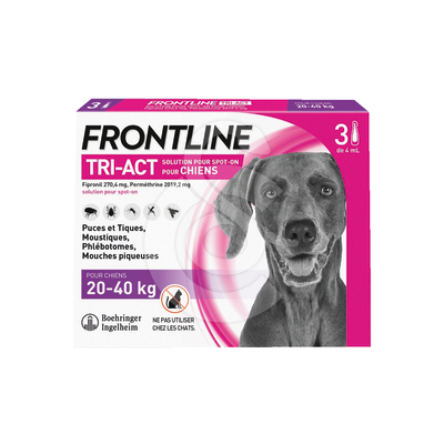 – Efficacité acaricide immédiate contre Rhipicephalus sanguineus et Ixodes ricinus, mais si des tiques sont présentes lorsque le médicament est appliqué, elles peuvent ne pas être toutes tuées dans les 48 H suivant le traitement.
