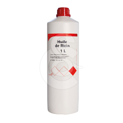 Huile grasse obtenue à partir de graines de Ricinus communis L. par pression à froid.