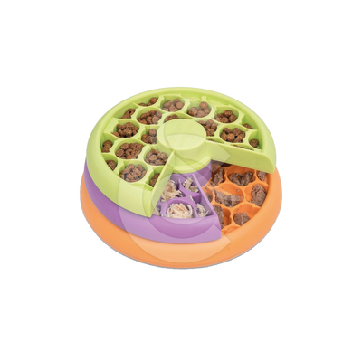 • Slow feeder conçu également pour les repas quotidiens afin de ralentir l’ingestion du repas et d’encourager un rythme alimentaire plus sain. Parfait pour les croquettes, la nourriture humide ou les friandises, il est facile de l’étaler en démontant les trois couches et en remplissant chaque couche avec la nourriture préférée de votre chat.