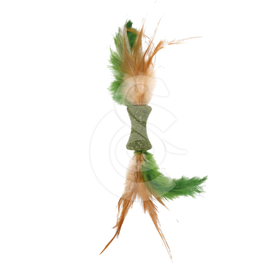 Jouet pour chat Wouapy composé d’herbe à chat et généreusement agrémenté de plumes pour encore plus de stimulation.