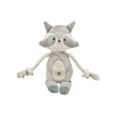 Cet adorable raton laveur est le compagnon de jeu idéal pour votre animal. Sa corde traversante incite à mâchouiller et à faire des jeux de traction avec vous, tandis que sa matière douce incite aux câlins. Le couineur éveillera la curiosité de votre animal et lui offrira de longues heures de jeu.