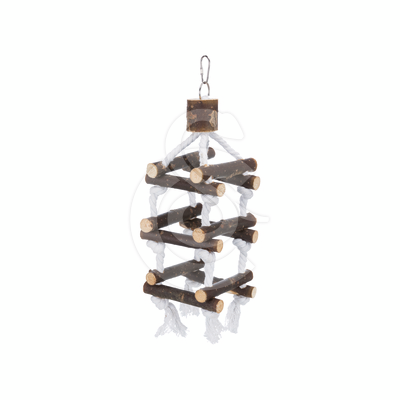 Cette tour en bois et corde, à suspendre, contribue à créer un environnement adapté à l’oiseau.