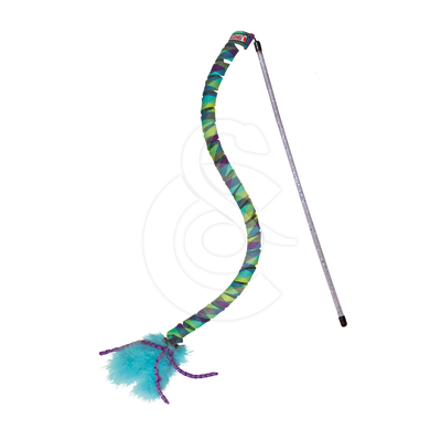 La forme en tire-bouchon de l’élastique au bout de la baguette scintillante est la clef du succès pour amuser les chats. Lorsque votre chat bondit sur la cible de plumes et de rubans, la détente immédiate de l’élastique tissé dans les spirales produit une série de réactions très satisfaisantes et l’incite à une course follement amusante.