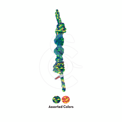 Grâce à la corde tendeur interne de KONG Rope Bunji, les séances de traction et de lancer de ce jouet solide, fait de noeuds et de tortillons, deviennent encore plus dynamiques.