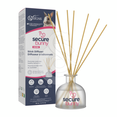 Le diffuseur Secure Bunny Home diffuse de la phéromone Apaisante de Lapin (RAP), créant un espace de vie plus agréable et rassurant pour les lapins (de toutes races et de tous âges).