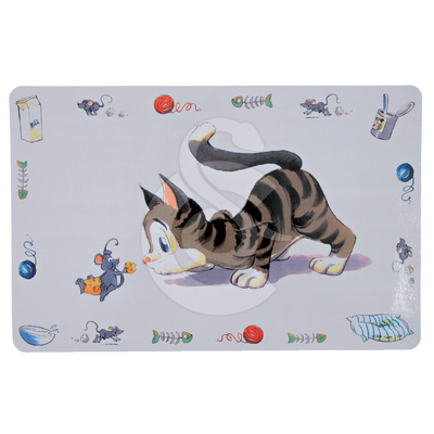 Pour un nettoyage plus rapide des débordements du repas, voici un set de table adapté aux petites tailles des gamelles pour chat.