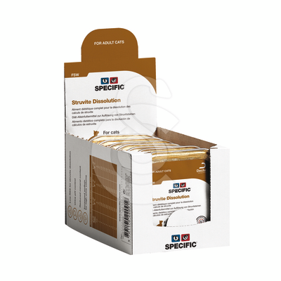 – Teneurs réduites en magnésium et en phosphore pour participer à la dissolution et à la prévention de récidive d’urolithiases à struvite.