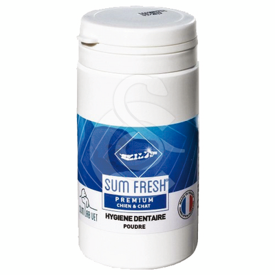 Sum Fresh a été formulé à partir d’un complexe d’algues marines et de fructo-oligossacharides, composants naturels dont l’efficacité en matière d’hygiène bucco-dentaire a été largement étudiée. Facile d’utilisation, Sum Fresh se présente sous forme d’une poudre appétente à disperser sur l’alimentation des chiens et des chats.